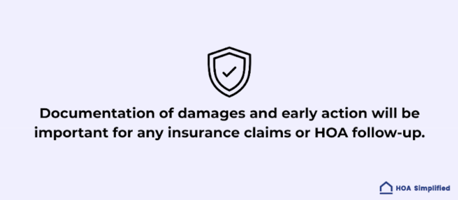 If you think the HOA is responsible, notify the board or property manager in writing right away. Include your documentation and a clear description of what happened.