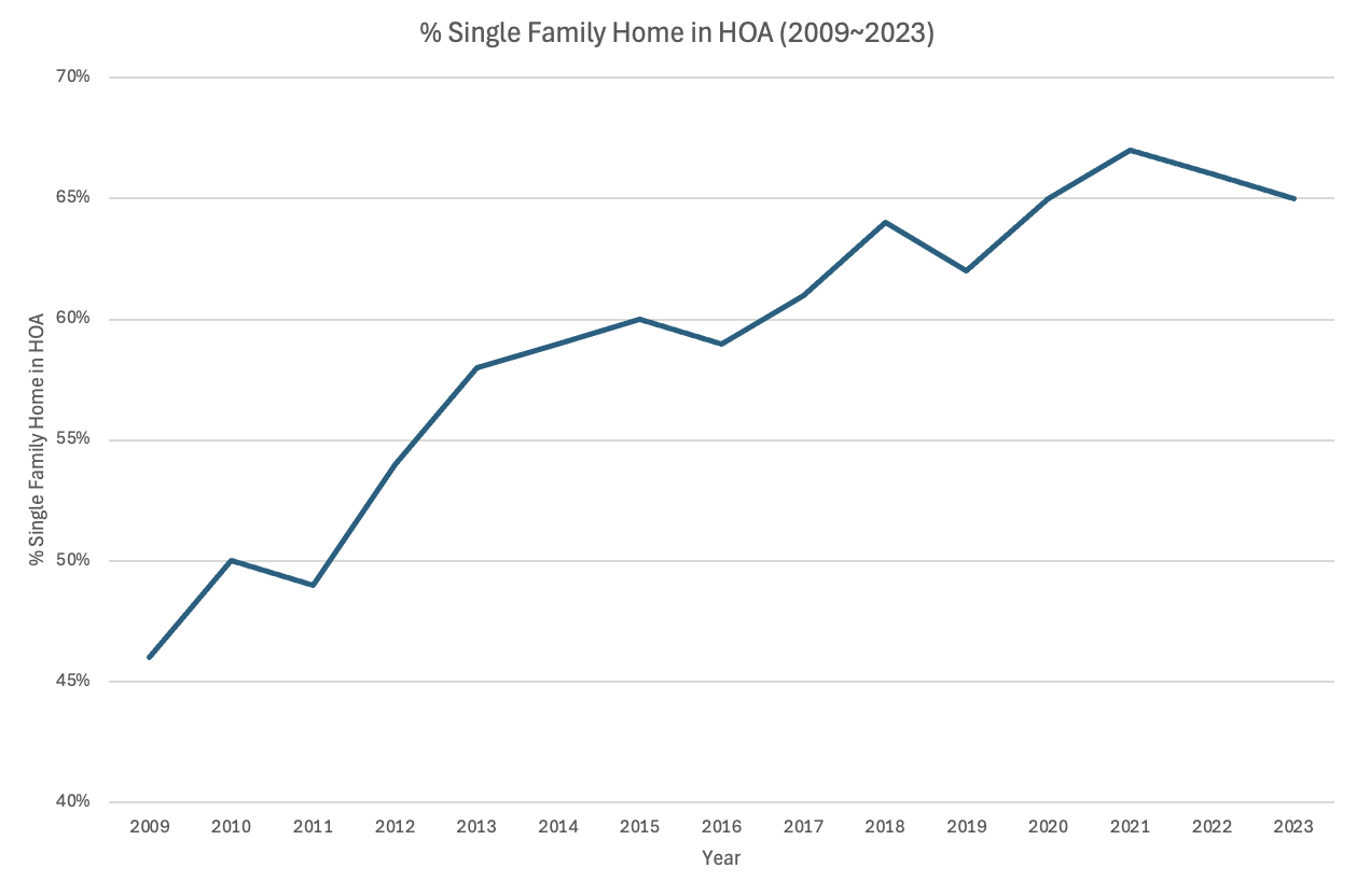 In the U.S., there are roughly 370,000 HOA-run communities, and more keep popping up, about 14 new ones every day. To put it in perspective, over 80% of the homes sold in 2023 were part of HOAs.